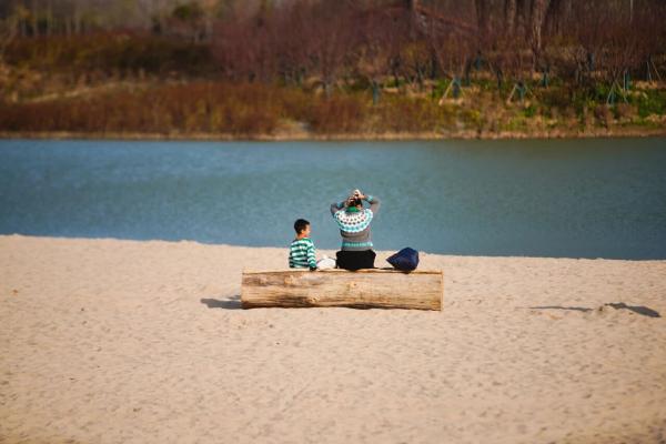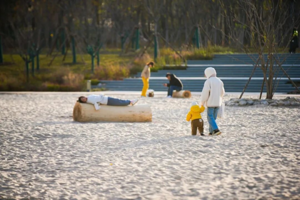 이곳 백사장은 공원 북구 서쪽 모래사장에 위치해 있으며, 아이들은 성을 쌓느라 바쁘고, 그네를 타고 있는 노인들이 호숫가를 산책하며 조화로운 도시 휴식 풍경을 이루고 있다.
