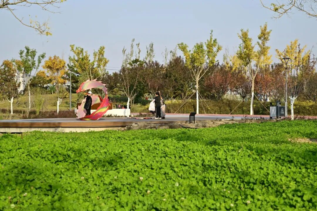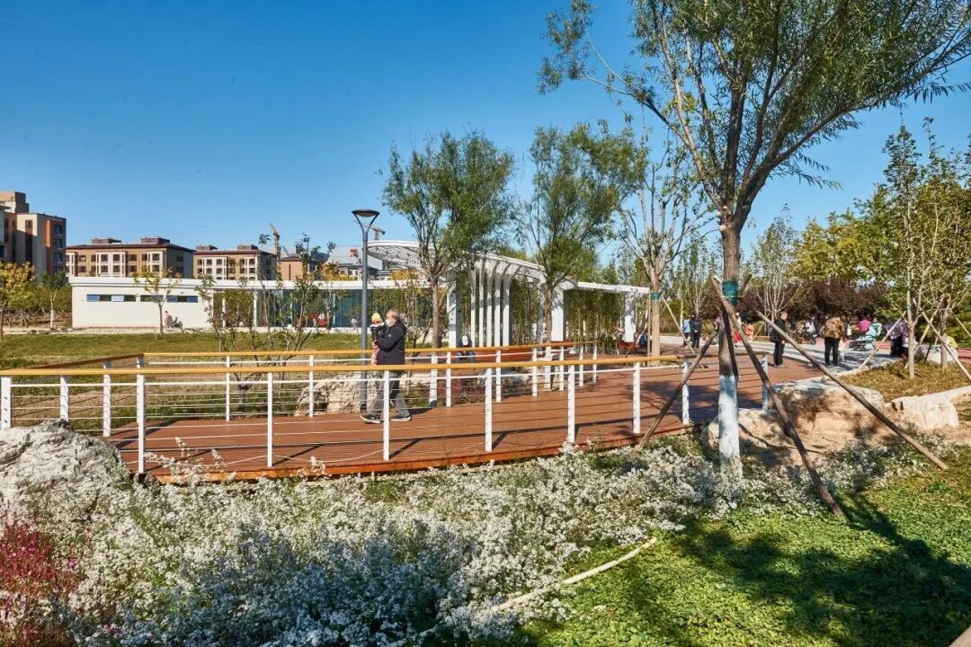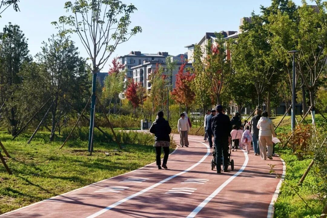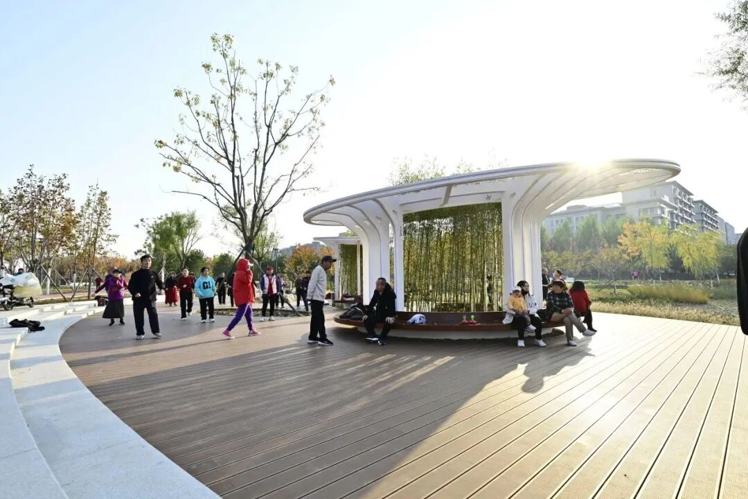 너비가 1~2미터인 평평한 투수벽돌은 지표 유출수를 효과적으로 감소시켜 도시 내 침수를 완화한다. 4,000여 평방미터의 수성 EAU 코팅 트랙은 달리기 마니아들에게 전문적이고 편안한 운동장을 제공한다